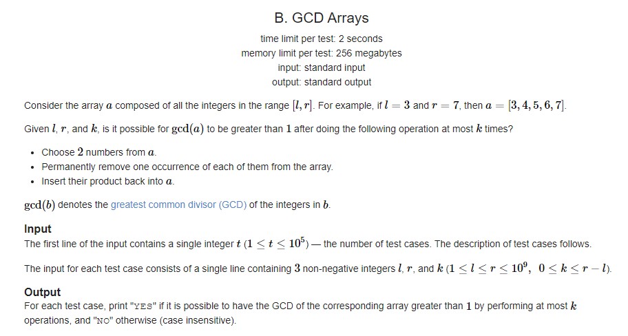 对于给定的数组来说,有可能在 $k$ 次操作后,得出一个 GCD 大于 1 的数组嘛?