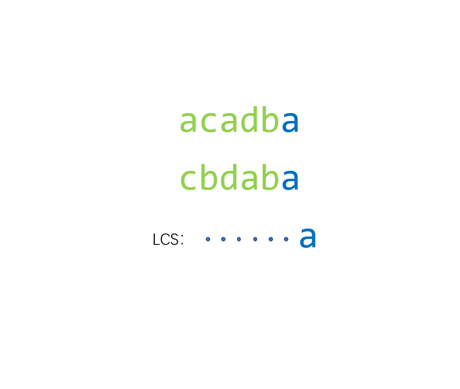 在最后一位元素不相同的情况下,$LCS(S1,\ S2) = max(LCS(S1,\ S2_{i-1}),\ LCS(S2, S1_{i-1}))$